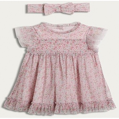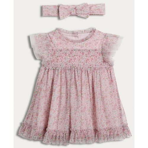 2-Piece Floral Smocked Dress and Headband Set in Pink