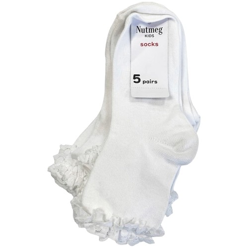 Girls Short Picot Socks 8-12 Black 5 pairs