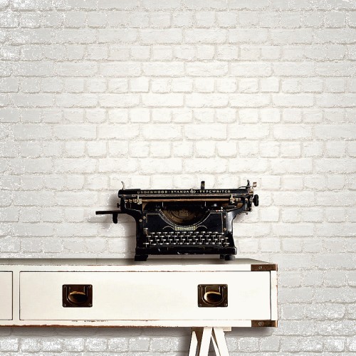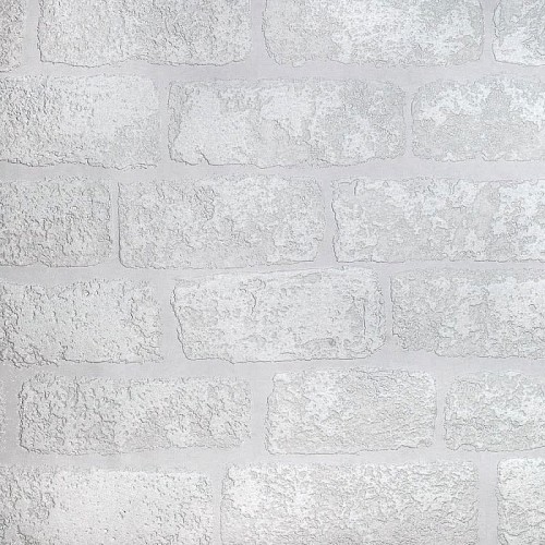 Metallic Brick Effect White Silver Wallpaper