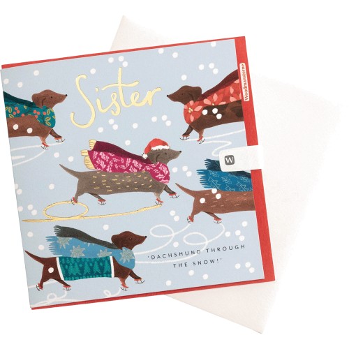 Sister Christmas Card with Sausage Dogs Daschund Through The Snow Greeting Card