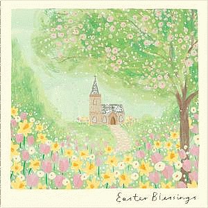 Happy Easter Multi6Pack Blessings Church in Meadow Design Greeting Card