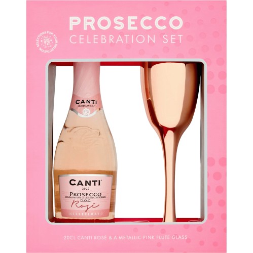Canti Prosecco D.O.C. Ros Extra Dry Millesimato includes 20cl canti ros, iridescent flute glass, 2 heart shaped bath bombs and scented candle