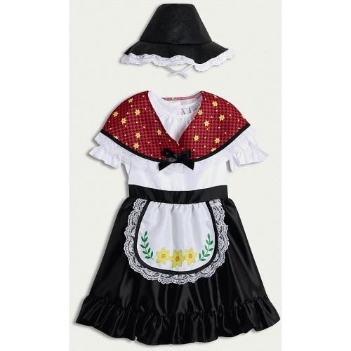 F&F Girls Welsh Fancy Dress Costume with Hat in Black