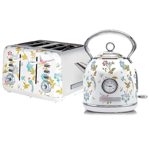 Laura Ashley Dome Kettle and 4 Slice Toaster Elveden White