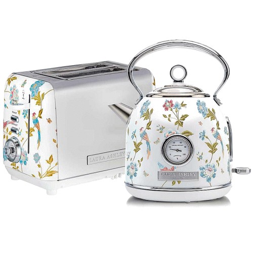 Laura Ashley Dome Kettle and 2 Slice Toaster Elveden White