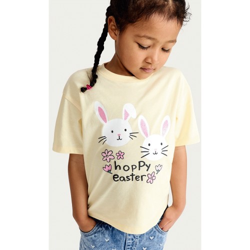 F&F Girls Pure Cotton Hoppy Easter Bunny T-Shirt in Yellow
