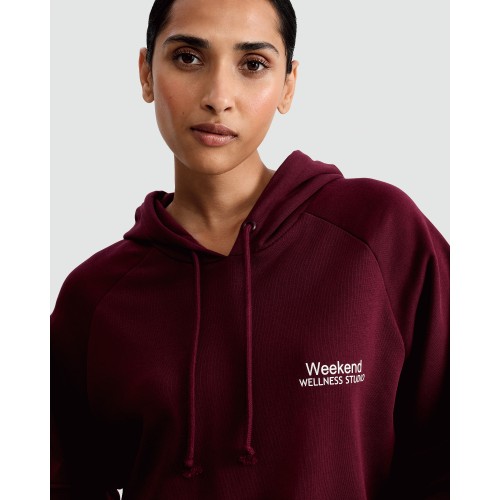 Active Cotton Rich Weekend Wellness Studio Hoodie in Burgundy