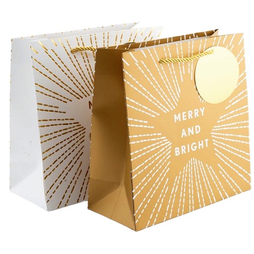 Square Gift Bags Assorted Gold Designs (2Pack)