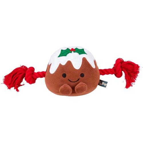 CHRISTMAS PUDDING WITH ROPE PLUSH DOG TOY