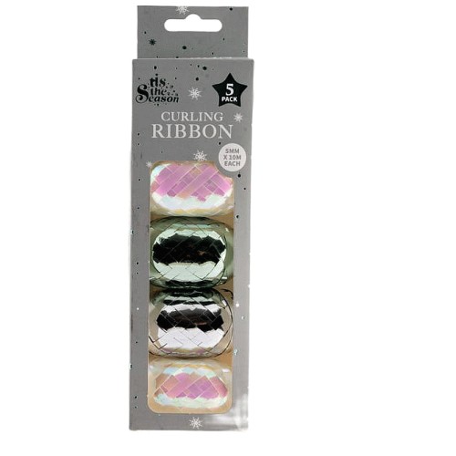 Curling Ribbon Silver Green Pearl x10m Each (5Pack)