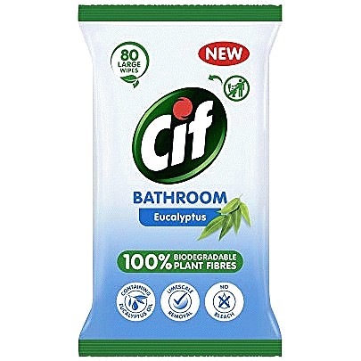 Cif Bathroom Wipes with Eucalyptus remove visible and invisible dirt from ceramics and other bathroom equipment