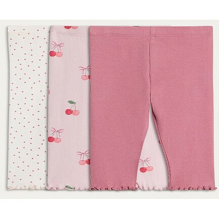 3-Pack Cotton Rich Ribbed Cherry Print Leggings in Pink