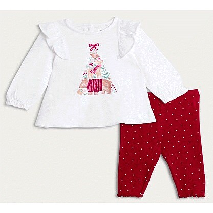 2-Piece Cotton Rich Animal Tree Print Top and Leggings Set in White