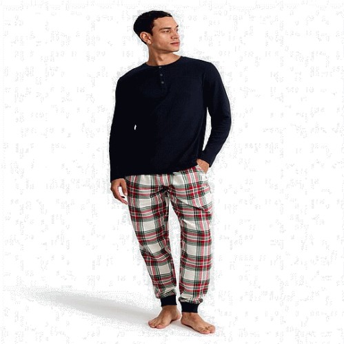 Pure Cotton Henley Top and Trousers Pyjamas in Multi