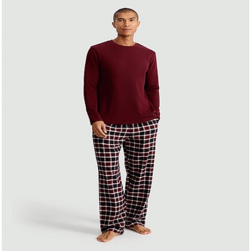 Pure Cotton Waffle Top and Check Print Trousers Pyjamas in Multi