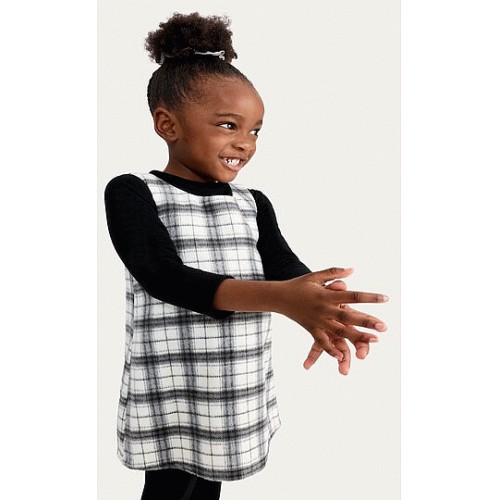 F&F Girls Cotton Rich Check Pinafore Top and Tights in Multi Black White