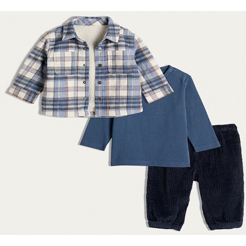 3-Piece Cotton Rich Shacket Top and Trousers Set in Blue