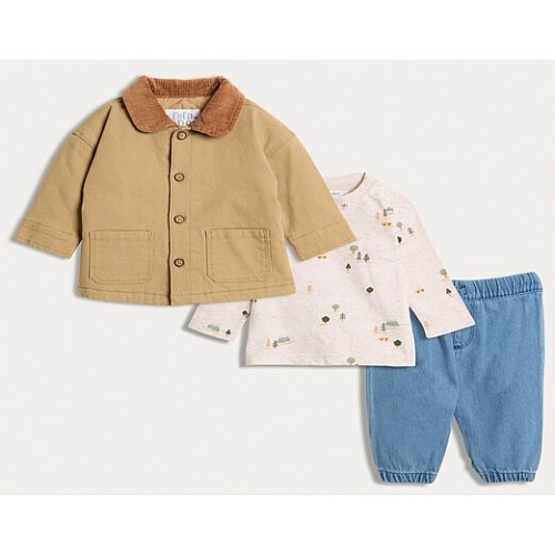 3-Pack Cotton Rich Jacket Top and Trousers Set in Tan