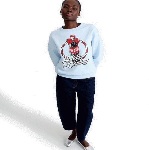 Coca-Cola Holidays Are Coming Cotton Rich Slogan Sweatshirt in Blue