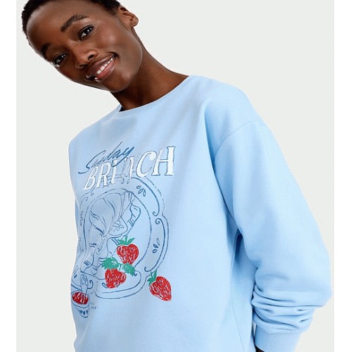 Cotton Rich Sunday Brunch Slogan Pyjama Set in Blue