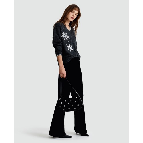 Cinnamoroll Snowflake Print Knitted Jumper in White