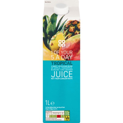 Made from apple juice, pineapple juice, mango purée and banana purée