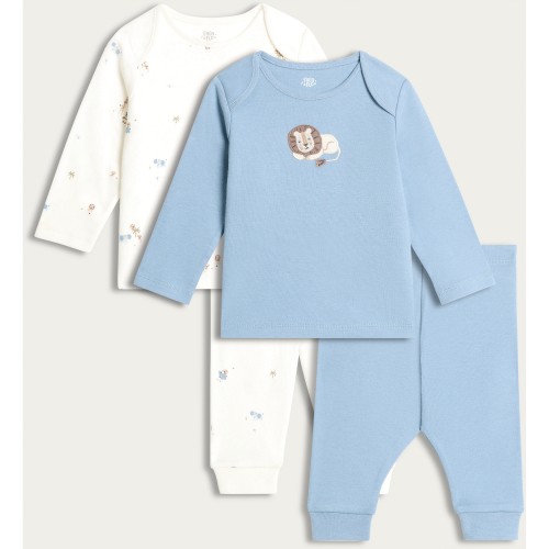 2-Pack Pure Cotton Lion Pyjama Set in Blue