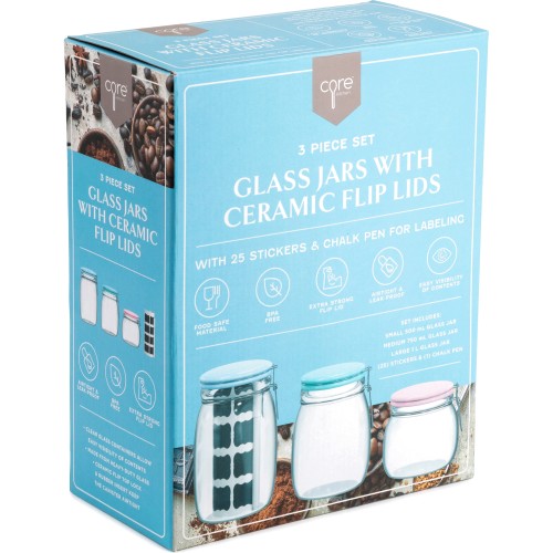 Glass Jars With Lable & Pen 3Pce