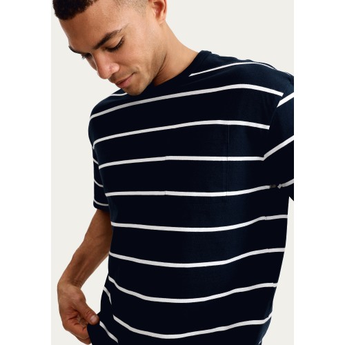 Pure Cotton Stripe Print Short Sleeved Relaxed Fit T-Shirt in Navy