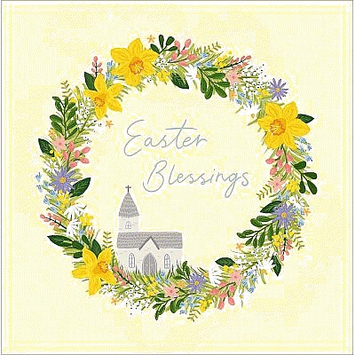Wreath And Church Happy Easter Card each