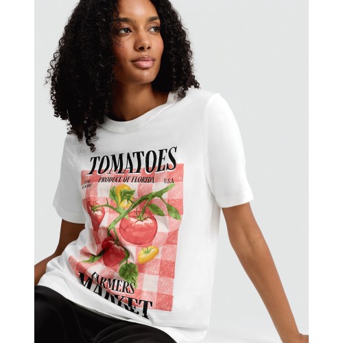 Pure Cotton Farmers Market Tomatoes Slogan T-Shirt in White