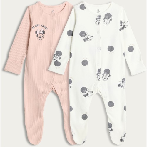Disney Minnie Mouse 2-Pack Cotton Rich Sleepsuits in Multi Pink