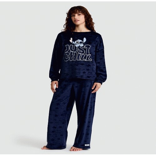Disney Stitch Just Chill Slogan Fleece Pyjamas in Blue