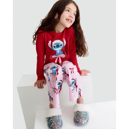 Disney Lilo & Stitch Pure Cotton Christmas Print Pyjamas in Multi