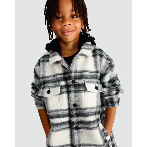 F&F Boys Brushed Check Print Hooded Shacket in Grey