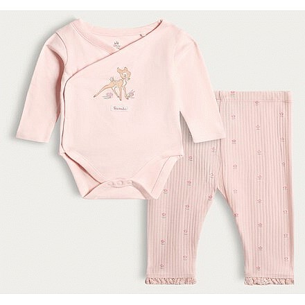 Disney Bambi 2-Piece Cotton Rich Bodysuit and Leggings Set in Multi Pink