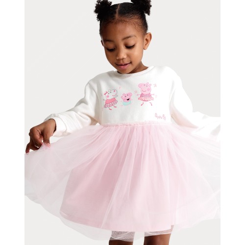 Peppa Pig Cotton Rich Long Sleeved Tulle Sweatdress in Cream