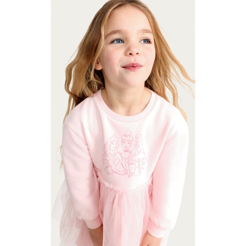 Disney Princess Cotton Rich Long Sleeved Tulle Sweatdress in Hot Pink