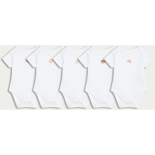 5-Pack Pure Cotton Food Print Bodysuits in White