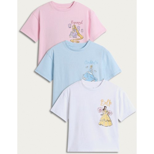 Disney Princess 3-Pack Pure Cotton T-Shirts in Multi