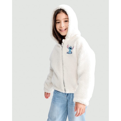 Disney Lilo & Stitch Fleece Embroidered Zip Up Hoodie in Cream