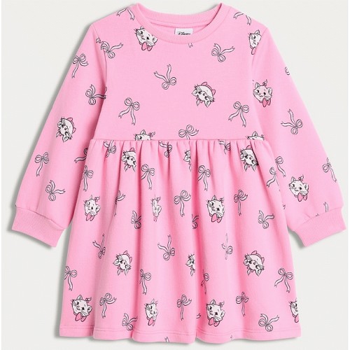 Disney The Artistocats Cotton Rich Marie Bow Print Long Sleeved Sweater Dress in Pink