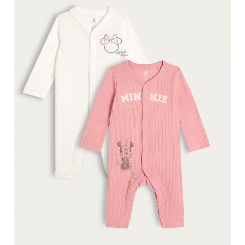 Disney Minnie Mouse 2-Pack Cotton Rich Sleepsuits in Multi Pink