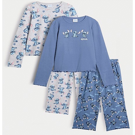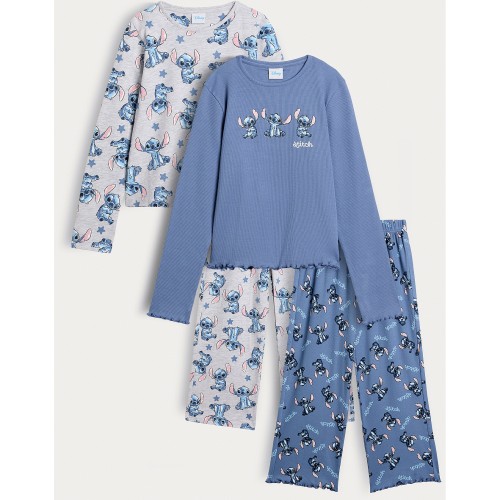 Disney Lilo and Stitch 2-Pack Cotton Rich Printed Pyjamas in Blue Multi