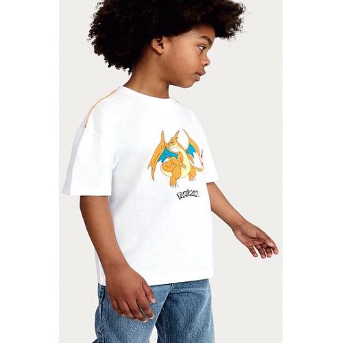 Pokemon Pure Cotton Charizard Short Sleeved T-Shirt in White