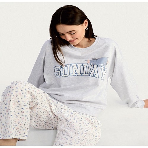 Disney Winnie the Pooh Eeyore Cotton Rich Sunday Slogan Pyjama Set in Multi Grey