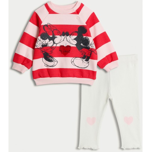 Disney Mickey & Minnie 2-Piece Cotton Rich Sweatshirt and Leggings in Pink