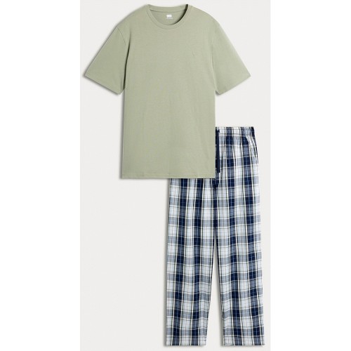 2-Piece Pure Cotton Checked Pyjama Set in Multi