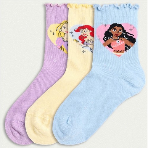 Disney Princess 3-Pack Cotton Rich Ankle Socks in Multi
