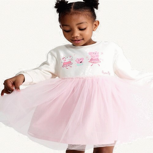 Peppa Pig Cotton Rich Long Sleeved Tulle Sweatdress in Cream